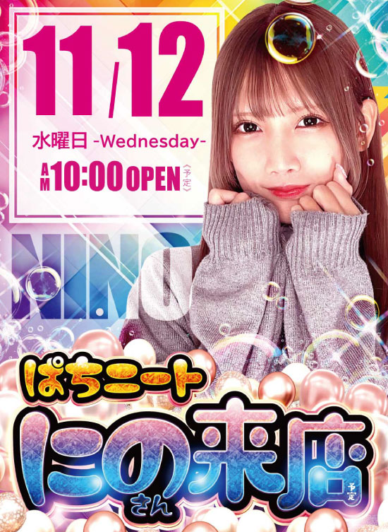 11月12日(水)10時開店★ぱちニートにのさん来店★