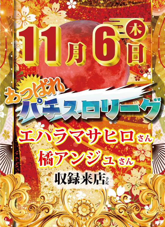 11/6(木)エハラマサヒロさん橘アンジュさん収録来店予定‼