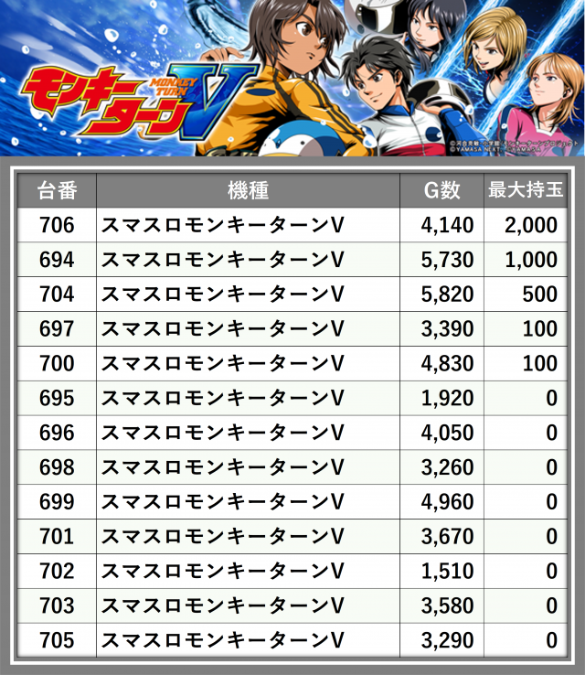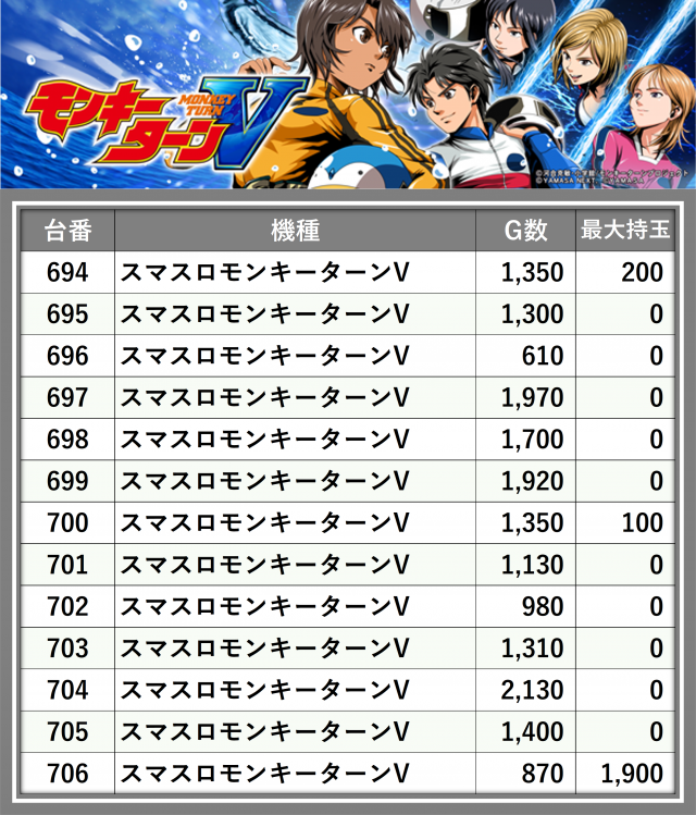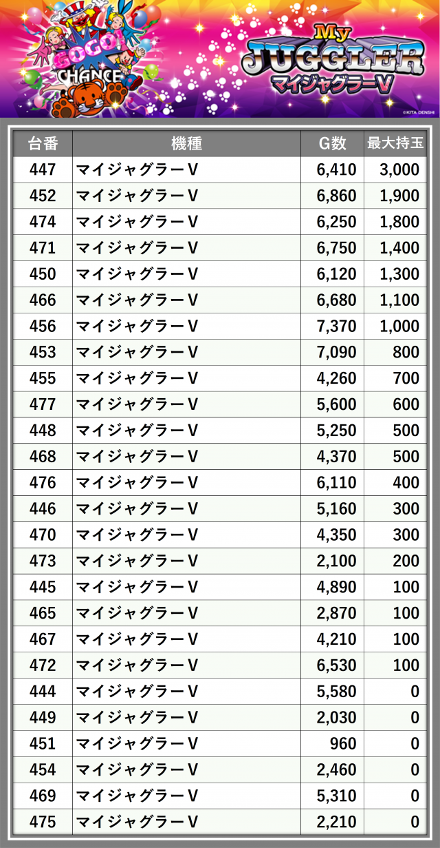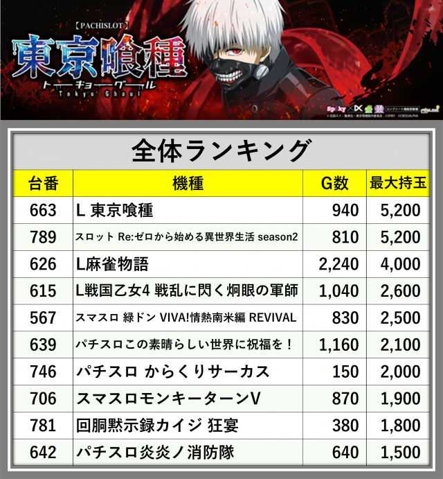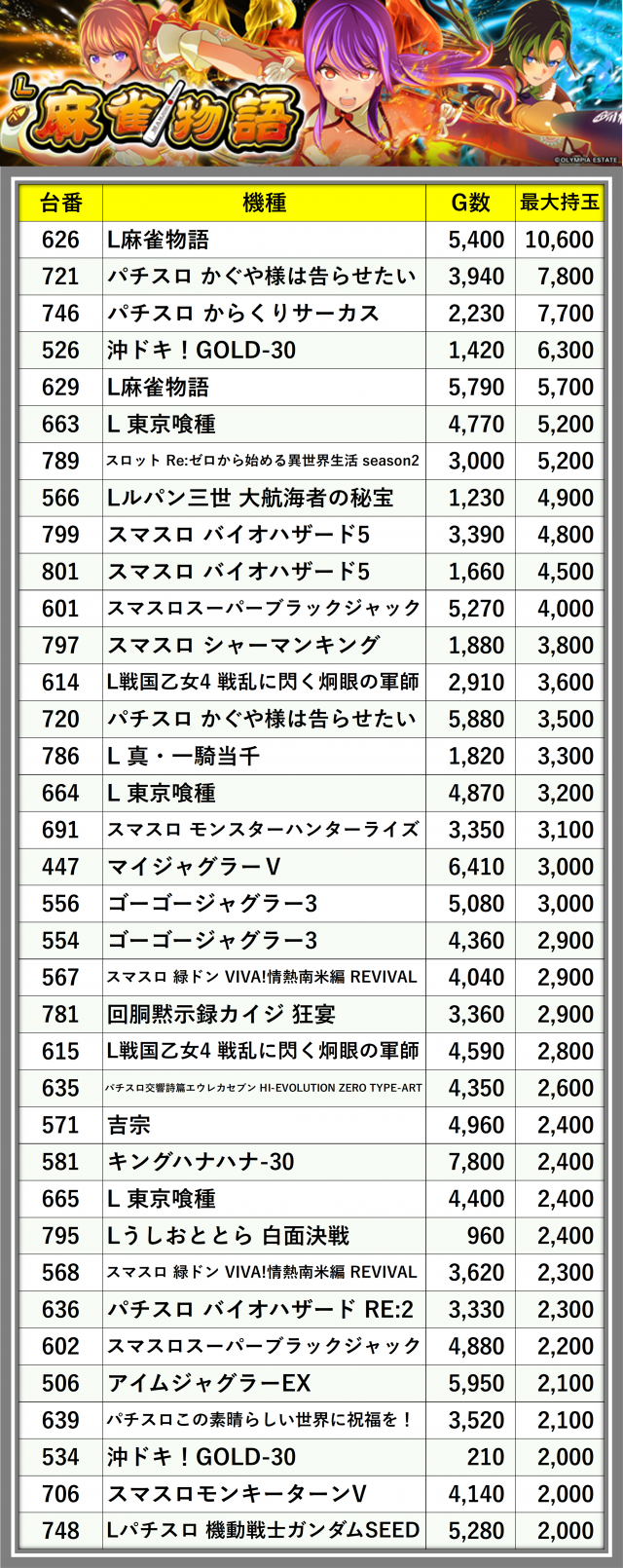 厳選された取材対象機種をはじめ、その他スロット全体から好記録が飛び出した!プレイヤーが楽しんだ1日を下記データにて振り返ってみて欲しい。