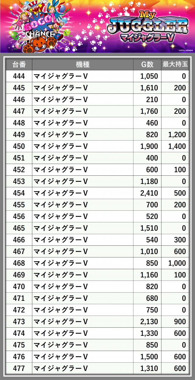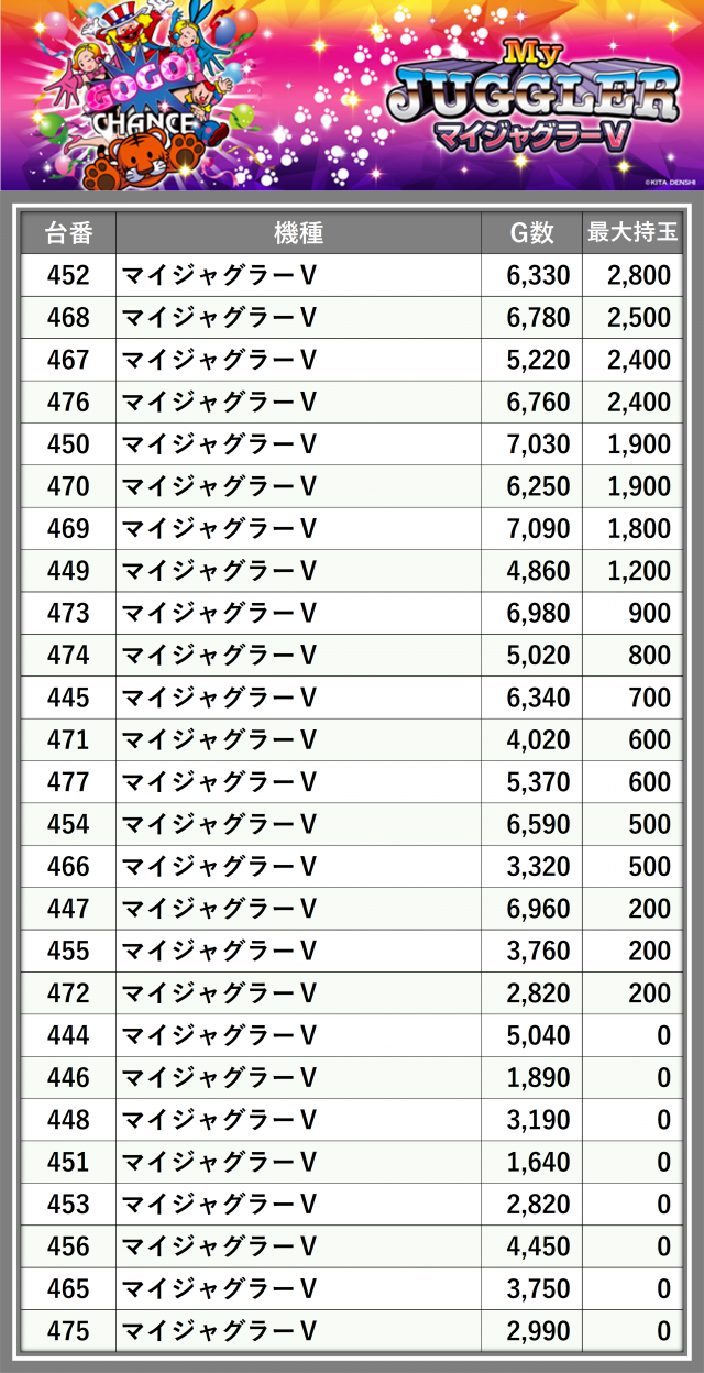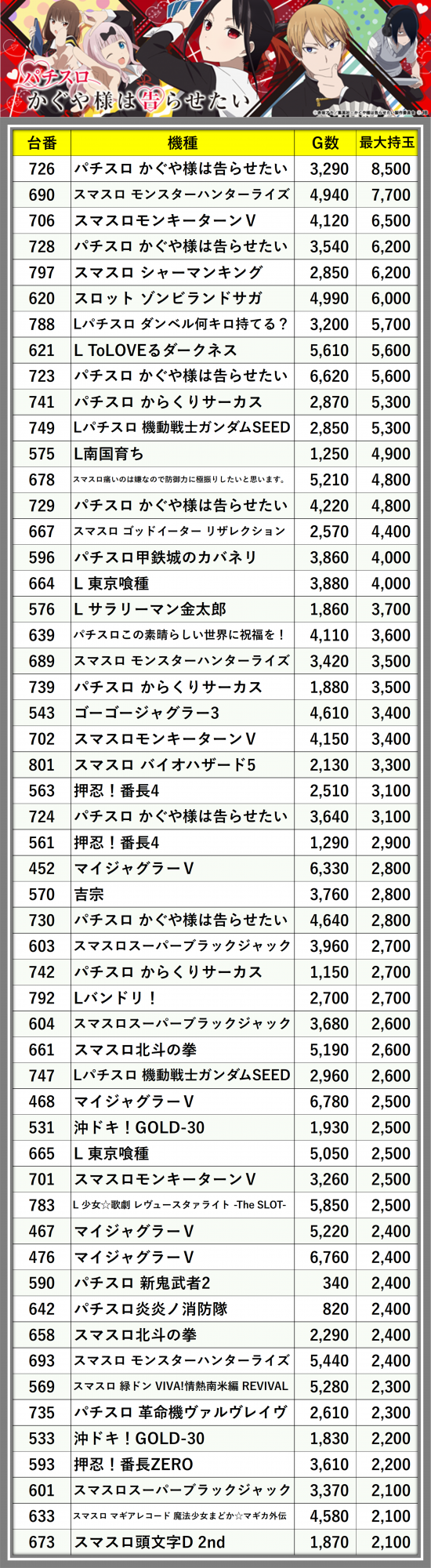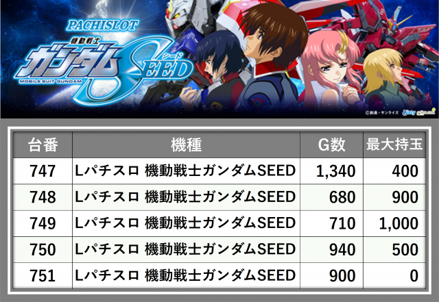 ※台番順に掲載しています