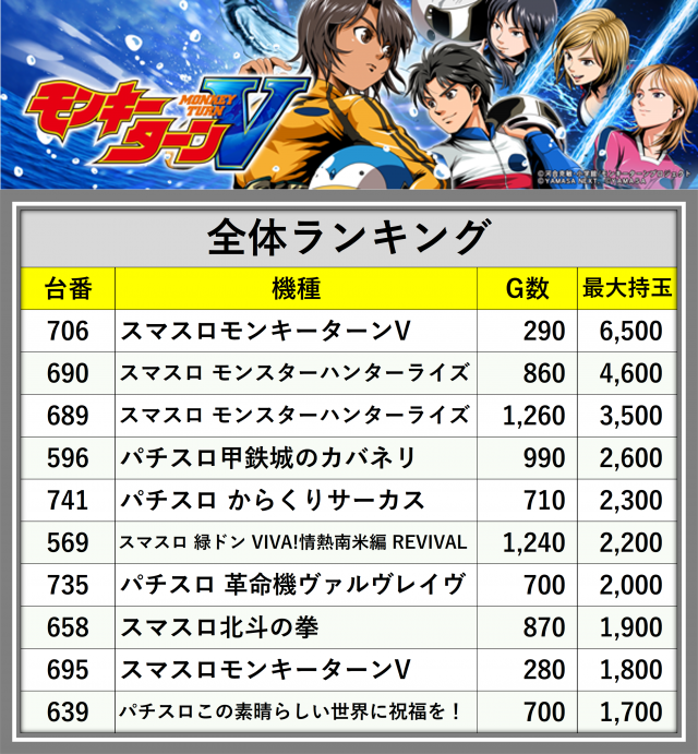 厳選された取材対象機種をはじめ、その他スロット全体から好記録が飛び出した!プレイヤーが楽しんだ1日を下記データにて振り返ってみて欲しい。
