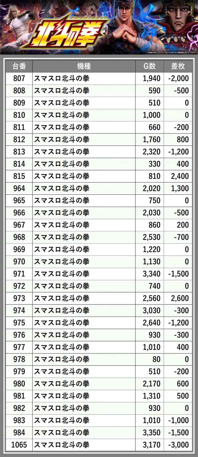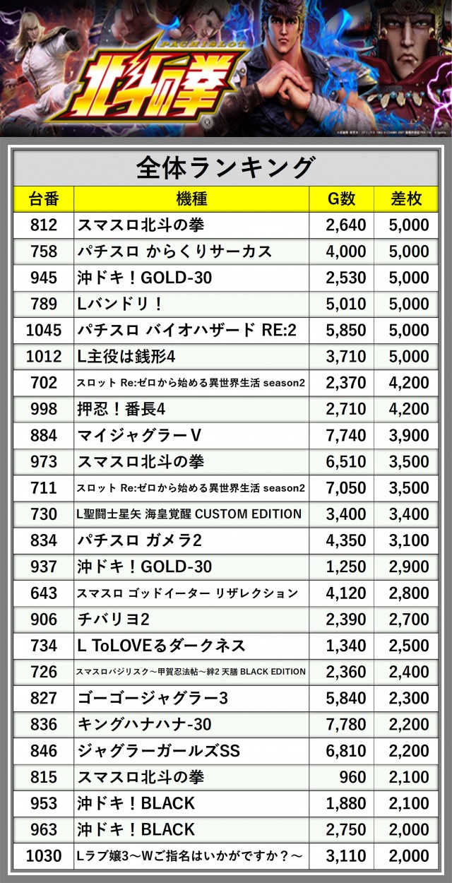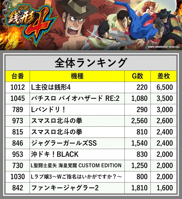 厳選された取材対象機種をはじめ、その他スロット全体から好記録が飛び出した!プレイヤーが楽しんだ1日を下記データにて振り返ってみて欲しい。