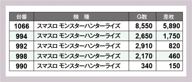 ※差枚数順に掲載しています