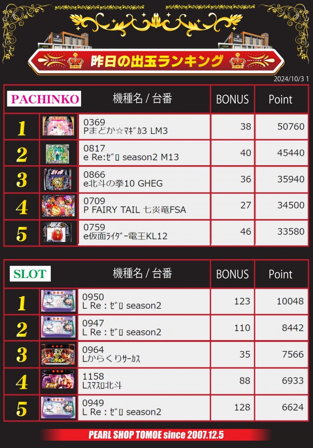 10月31日木曜日 10時開店♪スロセレ!