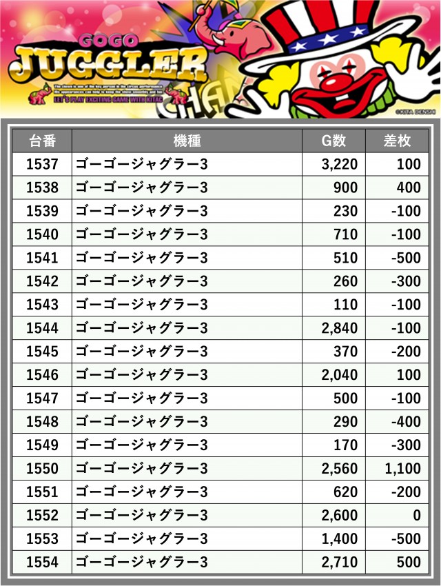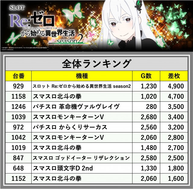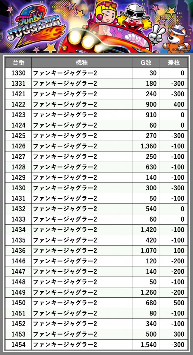 厳選された取材対象機種をはじめ、その他スロット全体から好記録が飛び出した!プレイヤーが楽しんだ1日を下記データにて振り返ってみて欲しい。