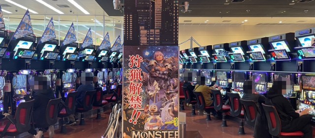 続いては、当日とくに盛り上がっていた3機種をご紹介。先ほど紹介した『パチスロ かぐや様は告らせたい』『スマスロ モンスターハンターライズ』に加え、『パチスロ からくりサーカス』からも良台が続出。それぞれ+1,000枚オーバーを記録する台が多数あり、ホールの凄まじい熱気を牽引する存在となっていた。