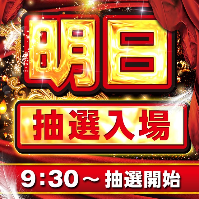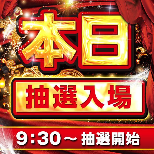9:30~抽選開始、入替・開店時に整理券を発行する場合が御座います |