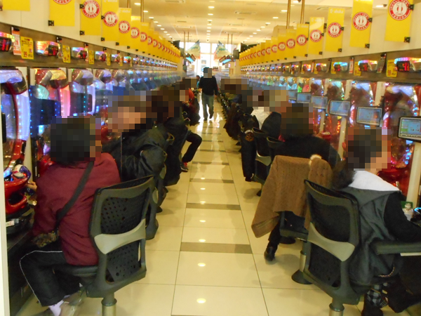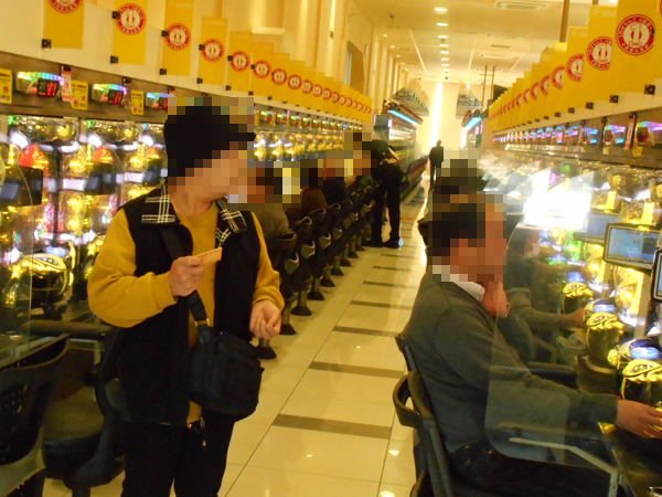 お昼過ぎの4円パチンコで盛り上がっていたのは「CR真・花の慶次」や「CR牙狼 金色になれ」。なかにはMAXタイプの性能を存分に発揮している台もあり、嬉しそうな表情のプレイヤーを多数確認できた。