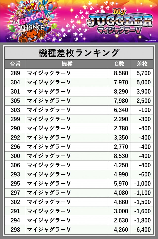 厳選された取材対象機種をはじめ、その他スロット全体から好記録が飛び出した!プレイヤーが楽しんだ1日を下記データにて振り返ってみて欲しい。