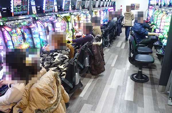設置機種がジャグラーシリーズのみであるパチスロも支持を受けており、コーナー全体に広がる雰囲気は明るい。