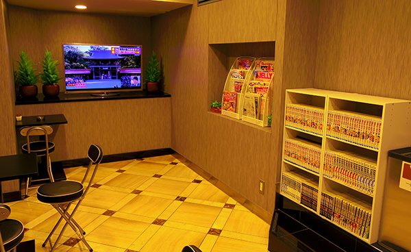 また、落ち着いた雰囲気のレストコーナーには漫画本や雑誌、新聞などが用意されている、休憩中や空き台を待つ時間も退屈せずに過ごすことができそうだ。