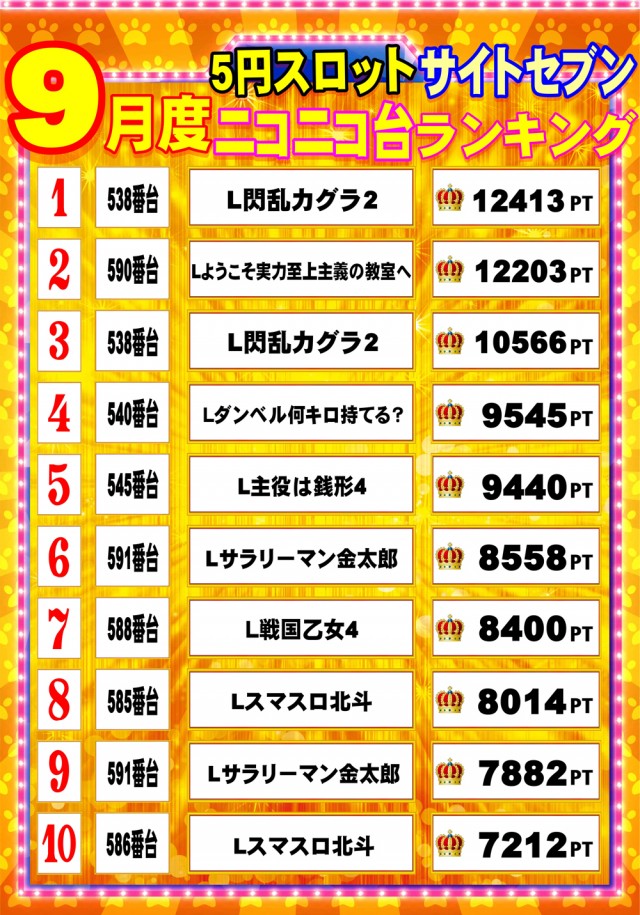 1位 9月15日(月) 2位 9月7日(日) 3位 9月28日(日)