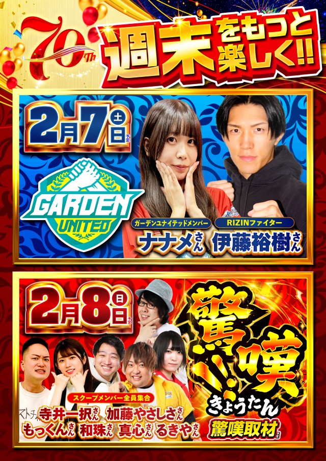 週末をもっと楽しく!✨ガーデンユナイテッドメンバー✨ナナメさん✨RIZINファイター✨伊藤裕樹さん♪来店予定♪