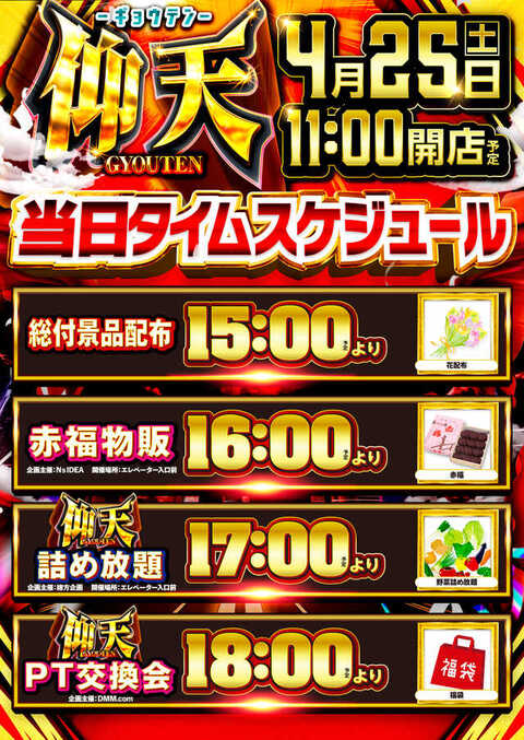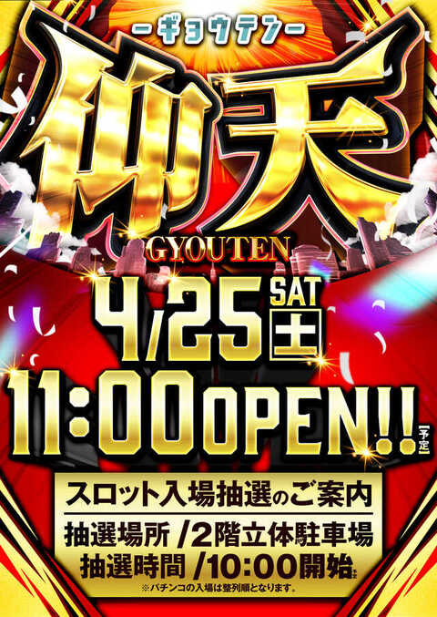 4月25日(土)🔥スロット抽選10時開始&11時開店予定🔥🔥
