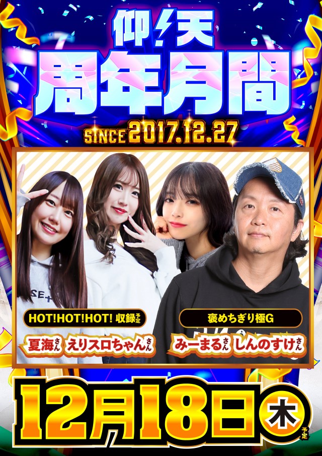 明日12月18日⚡W収録来店予定⚡HOT!HOT!HOT!✨夏海さん✨えりスロちゃんさん&⭐褒めちぎり極G⭐✨しんのすけさん✨み―まるさん