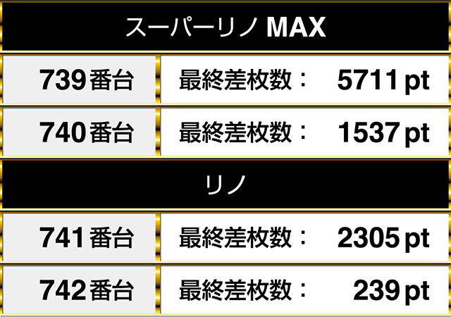 『スーパーリノMAX』に5711pt、1537ptが並ぶ!!