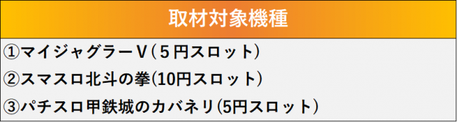 厳選された取材対象機種をはじめ、その他スロット全体から好記録が飛び出した!プレイヤーが楽しんだ1日を下記データにて振り返ってみて欲しい。