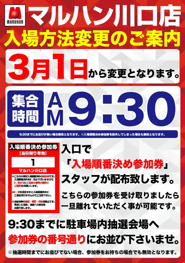 9時30分までにご来店頂きましたお客様全員に抽選して頂きます。 |