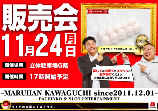 11月24日(月)10時オープン!たまご販売会開催!(予定)