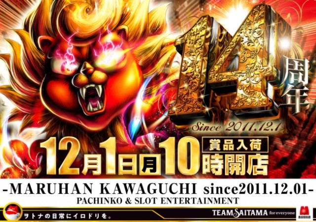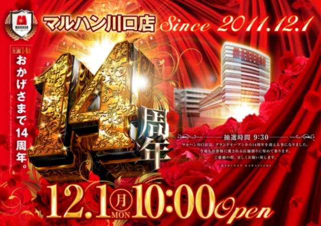 12月1日(月)☆マルハン川口店は14周年を迎えます☆