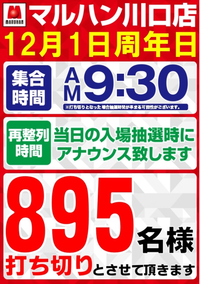 12月2日(火)10時OPEN!入場抽選は9時30分開始!