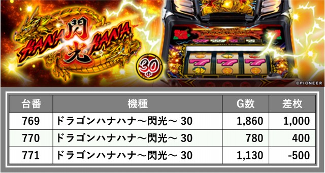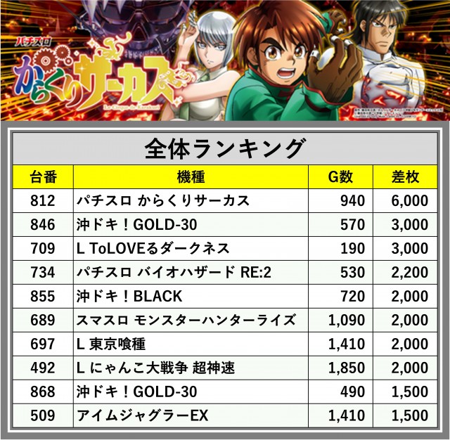 厳選された取材対象機種をはじめ、その他スロット全体から好記録が飛び出した!プレイヤーが楽しんだ1日を下記データにて振り返ってみて欲しい。