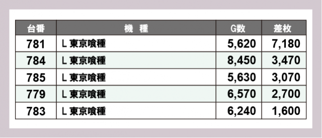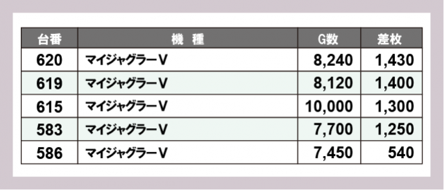 ※差枚数順に掲載しています