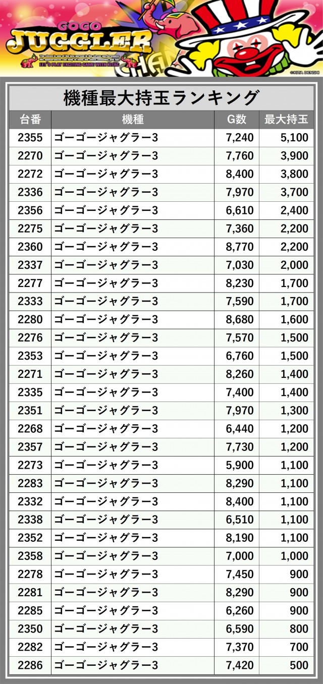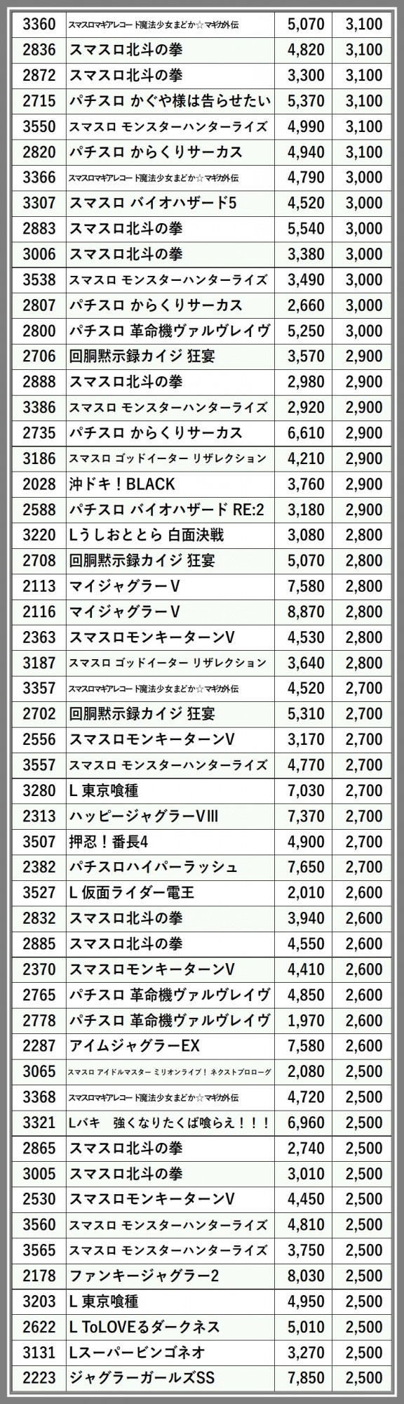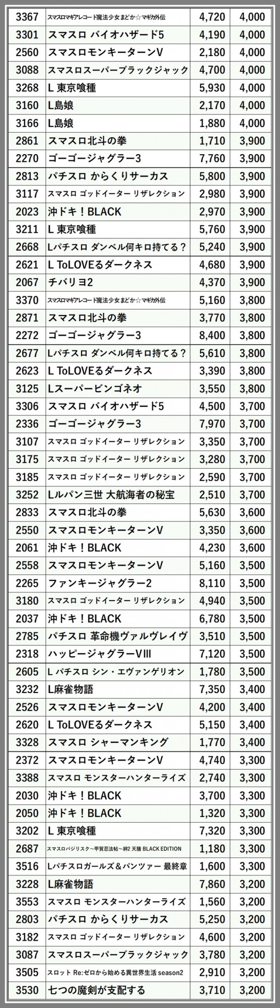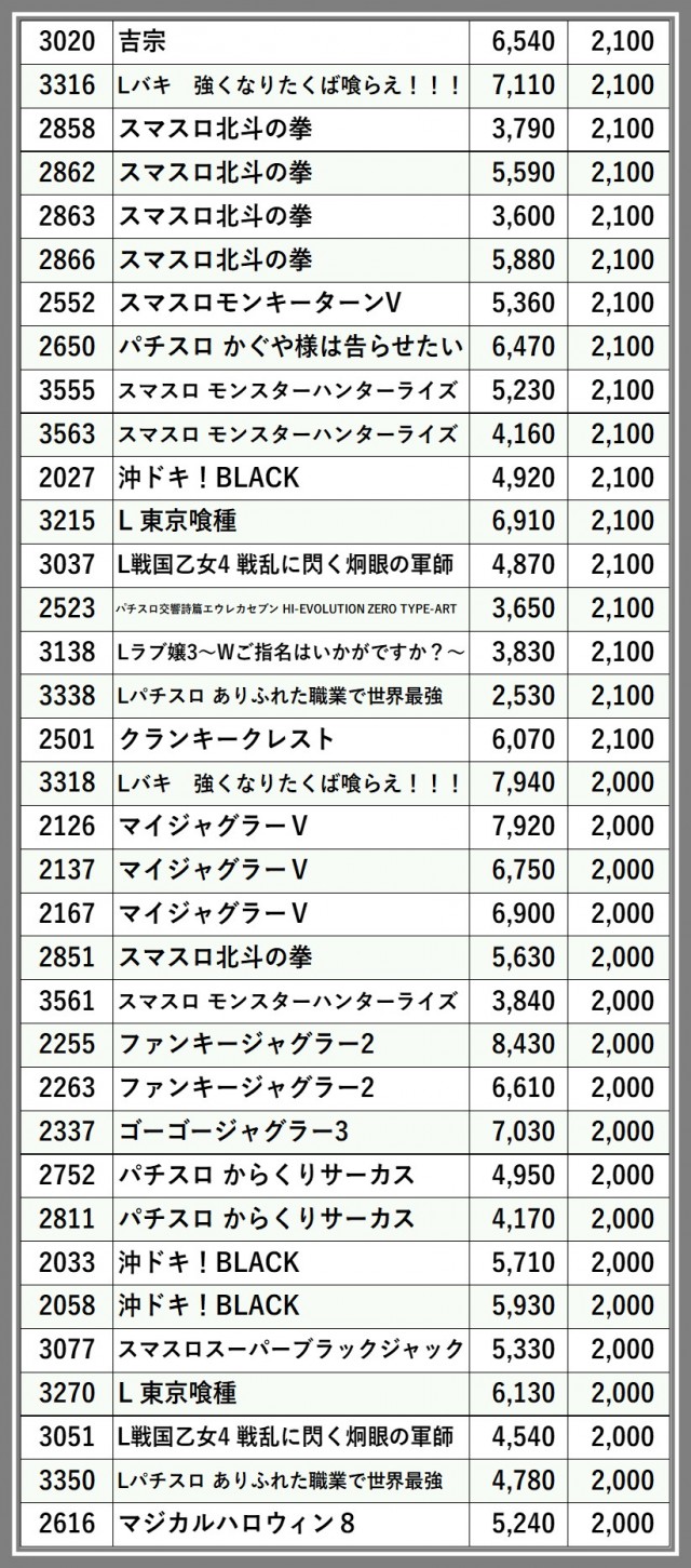 厳選された取材対象機種をはじめ、その他スロット全体から好記録が飛び出した!プレイヤーが楽しんだ1日を下記データにて振り返ってみて欲しい。