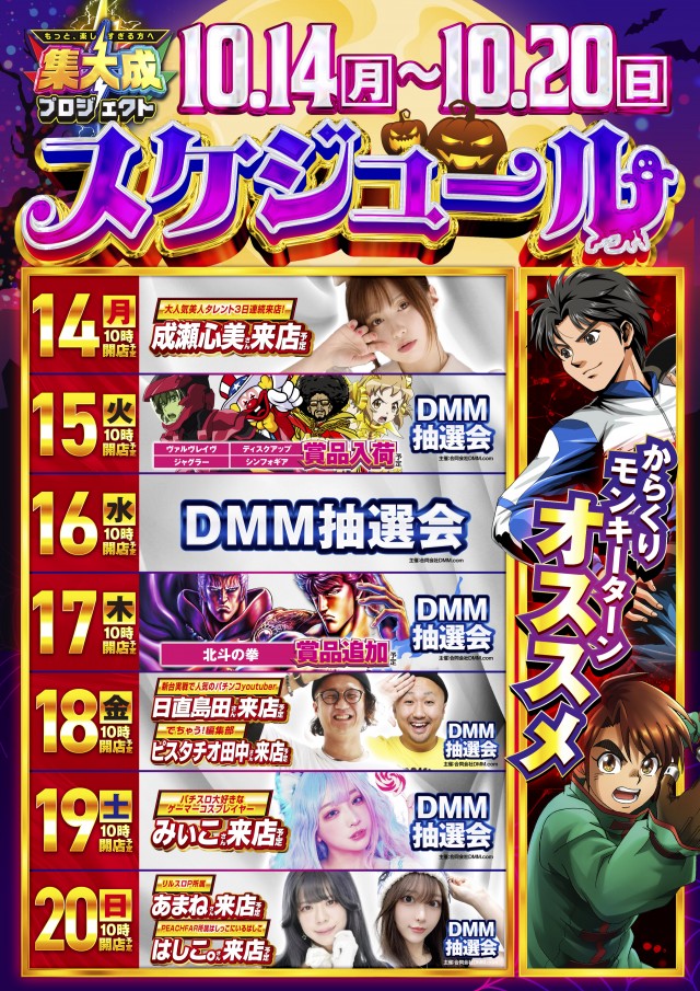 1位 11月3日(月) 2位 11月11日(火) 3位 10月25日(土)