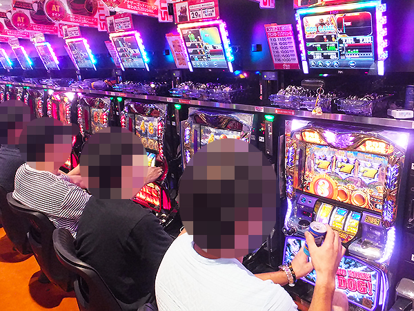 1000円/186枚パチスロに目を移すと、楽しそうにレバーを叩くプレイヤーの姿が至る所で見られた。