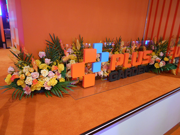 色鮮やかな造花とホールのロゴが飾られているスペースもあり、こまかいところにまでこだわっているイメージを受けた。