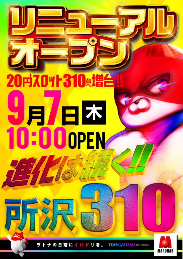 本日、リニューアルオープン!! スロット310台へ増台!!