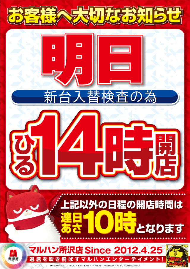 マルハン所沢店のお知らせ一覧
