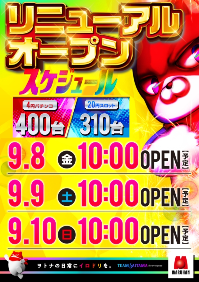 9月8日(金)リニューアル2日目!10時オープン!