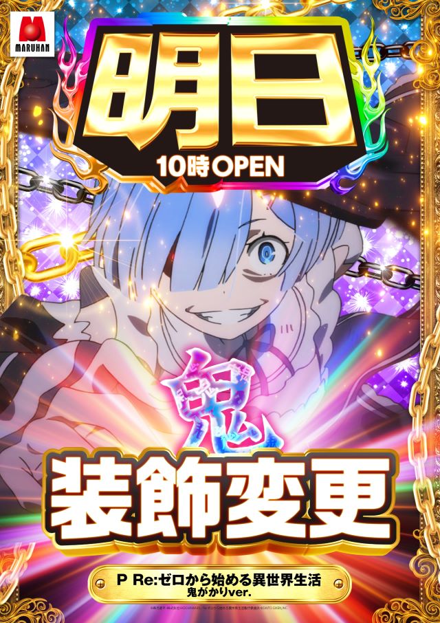 8月25日(金)リゼロ装飾変更♪&ジャグラー地域最大級設置!