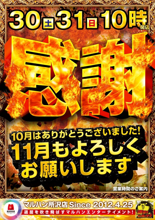 11月1日(月)2日(火)3日(水)連日10時オープン!!