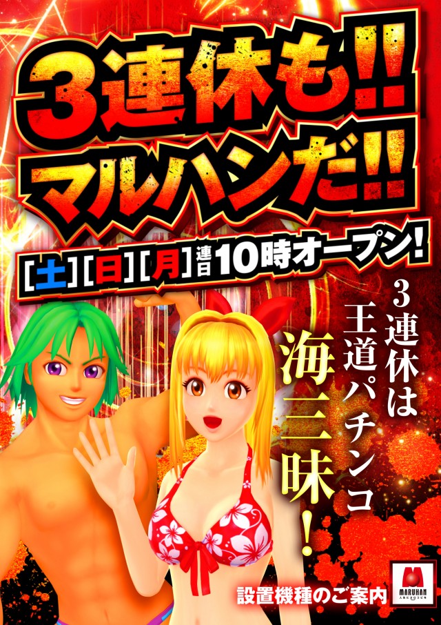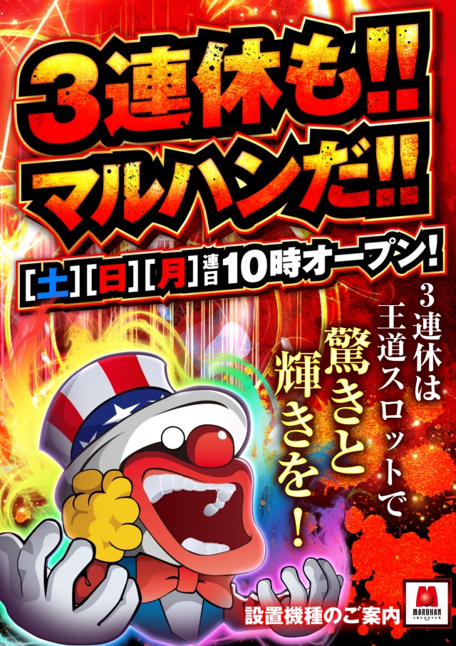 9月19日(日)3連休はマルハン所沢へ!10時開店!