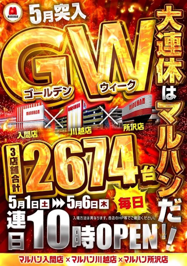👑川越店✖入間店✖所沢店👑全2674台設置🔥連日10時開店🔥