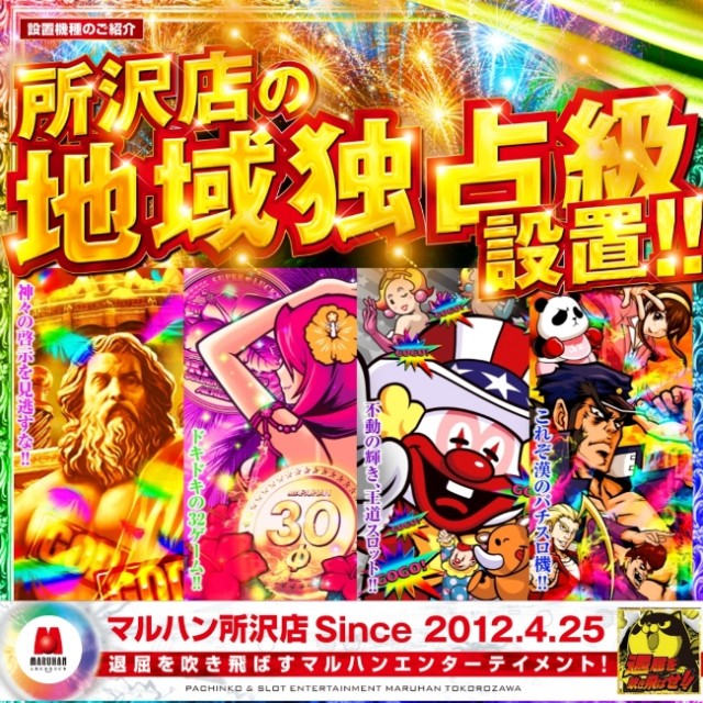 「マルハン所沢店」:明日10時開店!週末リフレッシュ!