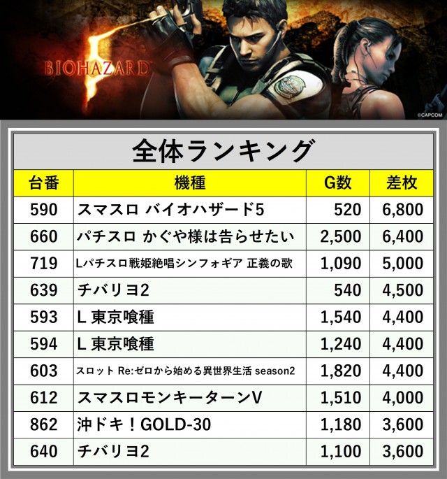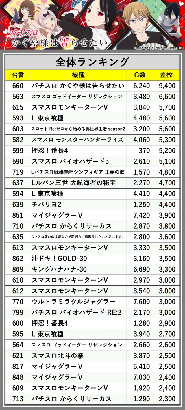 ※差枚数順に掲載しています