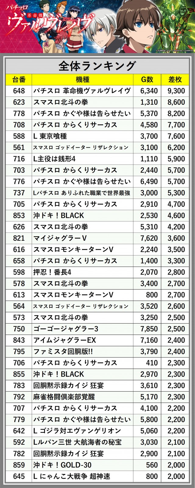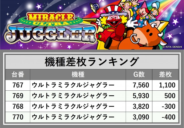 厳選された取材対象機種をはじめ、その他スロット全体から好記録が飛び出した!プレイヤーが楽しんだ1日を下記データにて振り返ってみて欲しい。