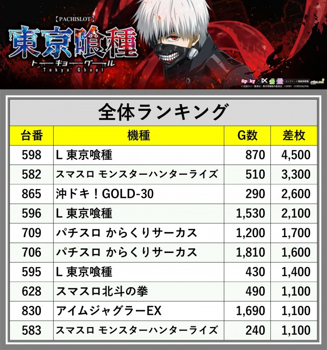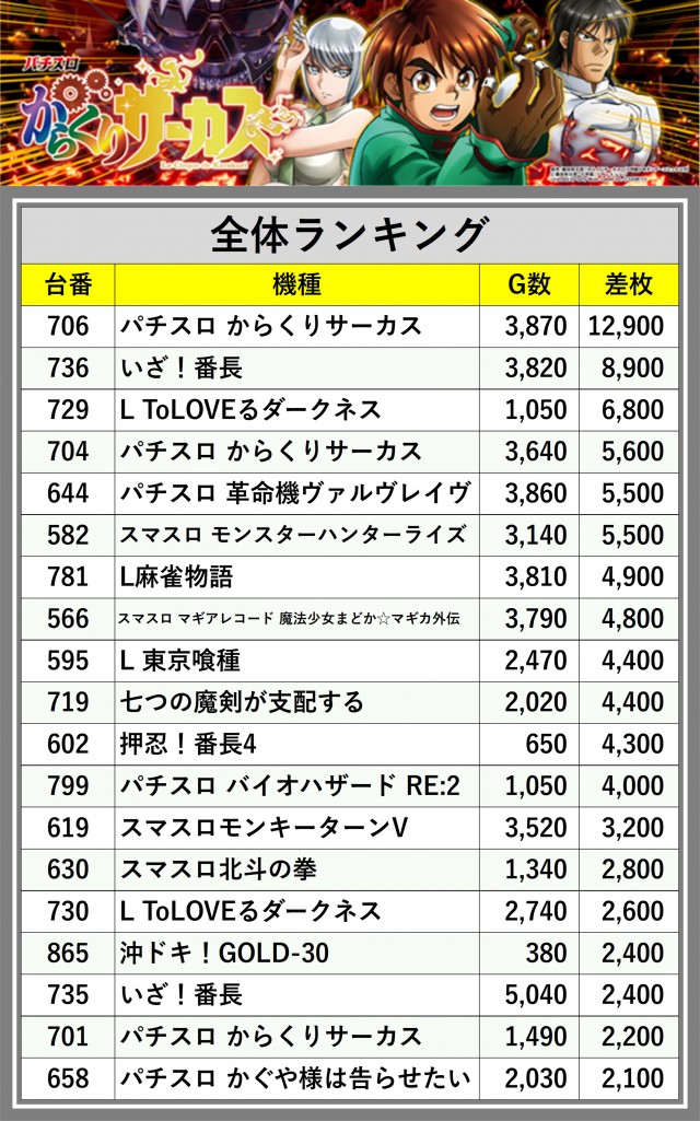 ※差枚数順に掲載しています