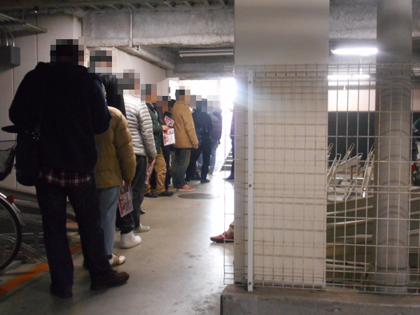 9時半からの入場抽選に集まったのは約30人。一般入場もあわせて50人ほどが朝イチの店内へと入場を開始した。