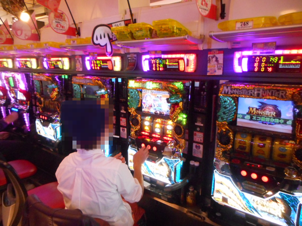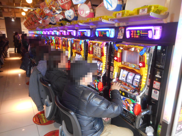 開店直後はこれまでに行った取材同様にパチスロコーナーへと向かうプレイヤーが多数。なかでも20円パチスロの「パチスロ黄門ちゃま 喝」や「真モグモグ風林火山2」といった新台、準新台が支持されており、すぐに満席近くとなった。人気機種の「押忍!サラリーマン番長」や「バジリスク~甲賀忍法帖~絆」なども空席は少ない。