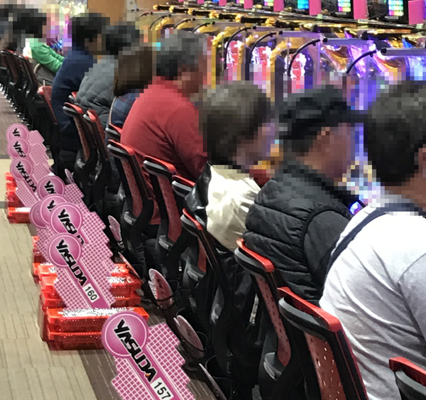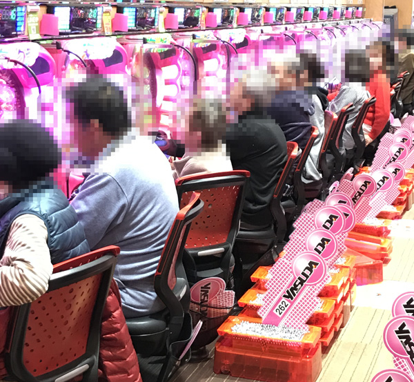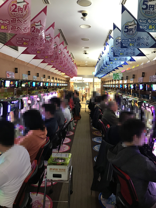 1円・0.5円パチンココーナーの低貸し玉コーナーも好評。稼働率も高く、演出などに一喜一憂しているプレイヤーも多く見られ、明るい雰囲気に包まれていた。
