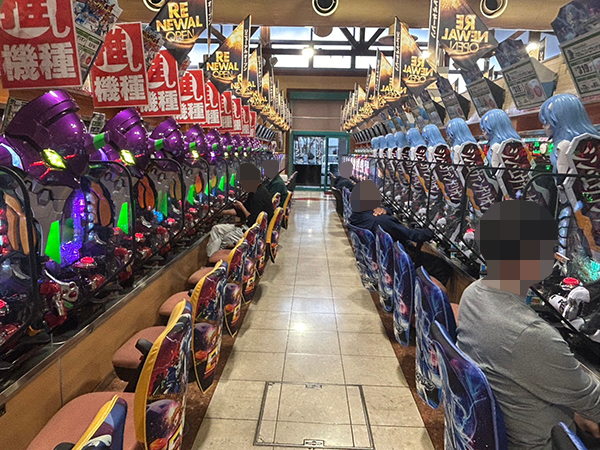 14時半ごろの4円パチンコをチェックすると「新世紀エヴァンゲリオン〜未来への咆哮〜」や「ぱちんこ シン・エヴァンゲリオン Type レイ」が活況の様子。機種性能を上手く引き出すプレイヤーを複数目撃している。