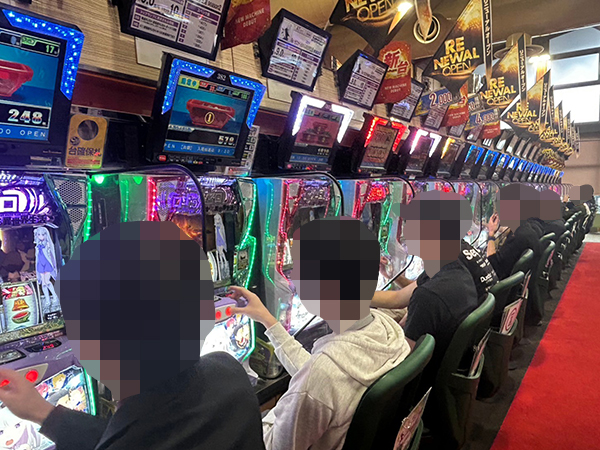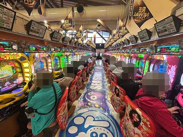 1円パチンコは甘海シリーズや「ぱちんこ冬のソナタRemember Sweet GORAKU Version」をはじめとする自社開発機が高稼働で、空き台を探し出すのがやっとという状況。各人、好きな機種を見つけ出し、心から遊技を楽しんでいたように思う。