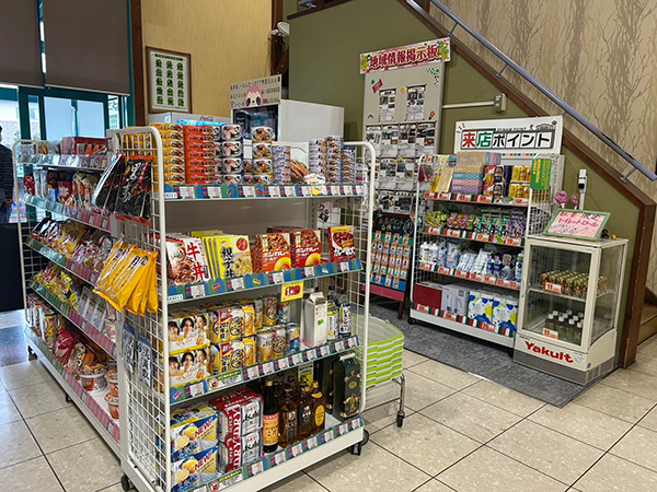 景品コーナーにはお菓子・インスタント食品・酒類など多彩なアイテムが揃っており、プレイヤーたちの目を引いていた。