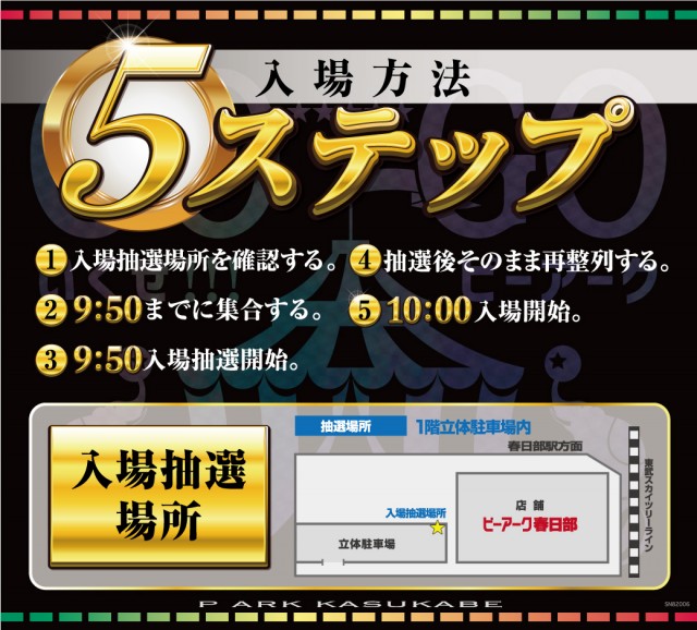 9:50~抽選開始 (15:00開店時は14:50~抽選開始)※場合によって変更有 |