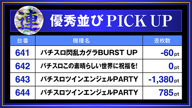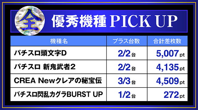 すべての台がプラスを記録し、稼働がよかった543番台は+3,000ptを超えた。